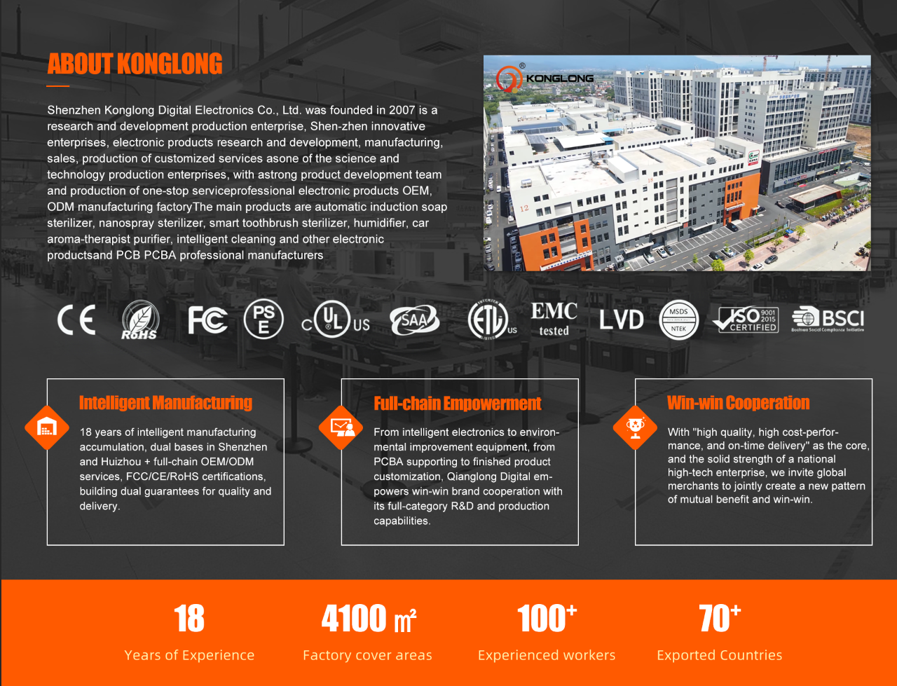 Our core advantages Vertical integration, with controllable costs Integrating mold making, injection molding, SMT assembly and assembly, we strictly control each production link to ensure efficient delivery and highly competitive prices. Lean production, quality first Equipped with advanced automated production lines and a strict IQC/IPQC/OQC quality control system, we ensure that every product meets high standards. Innovation in research and development, worry-free customization Our professional R&D team can provide flexible OEM/ODM services based on customer needs, from appearance to function, to help you create unique products. Experienced and globally trusted Having been deeply engaged in the digital electronics industry for 18 years, our products are exported to over 26 countries and regions around the world. We are your reliable long-term partner.
